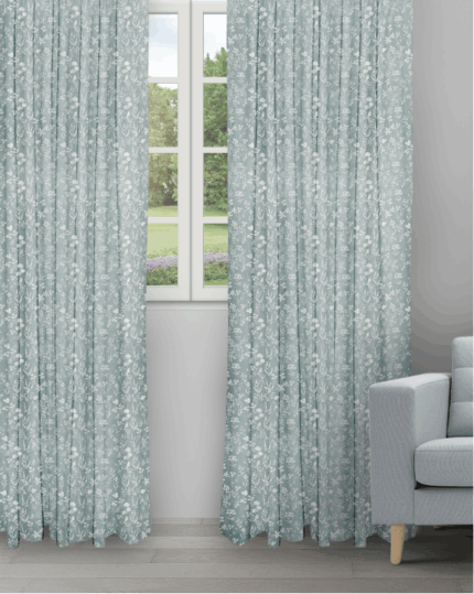 Floral Athena – Sky Ripple Fold Drapes