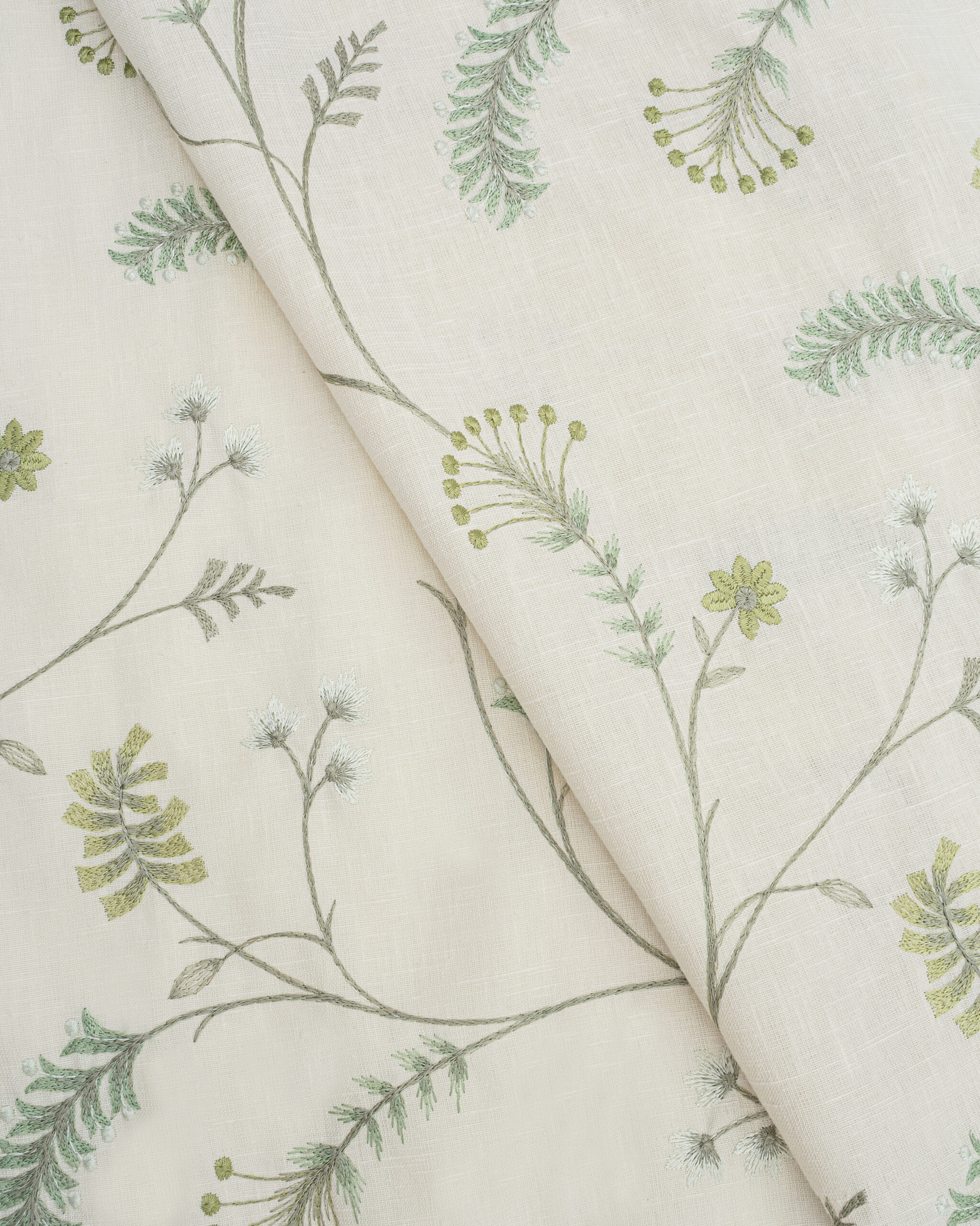 Embroidered Silvy – Sage Green Ripple Fold Drapes