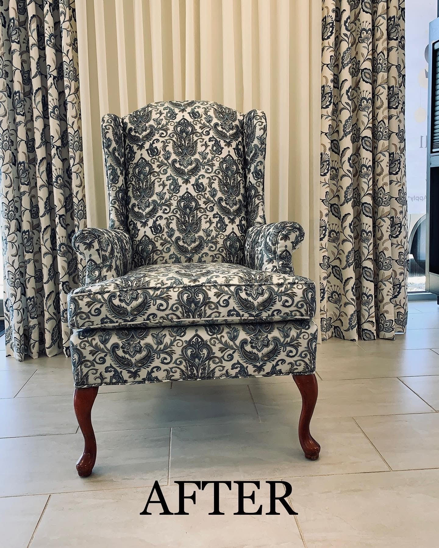 “I had an old wing chair that was over 40 years old and needed to be redone. Since it was of very good quality, with solid construction, metal springs, and heavy wood frame I reached out to Curtain Avenue for re-upholstery. They had a wide selection of fabrics to choose from. The chair took a few weeks to come in and the final result was amazing. The chair is beautiful and definitely worth it. It is nicer today than when it was new back in 1980 when my parents purchased that chair. I am very satisfied and I saved an old piece of furniture that had sentimental value. It was worth having it redone instead of buying a new chair that does not have the workmanship of older furniture.”